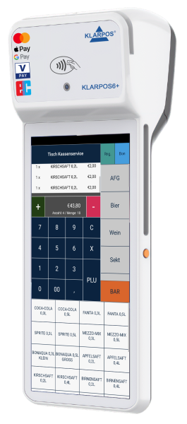 Anschluss auch von KLARPOS-Zahlungsgeräten oder Tablets